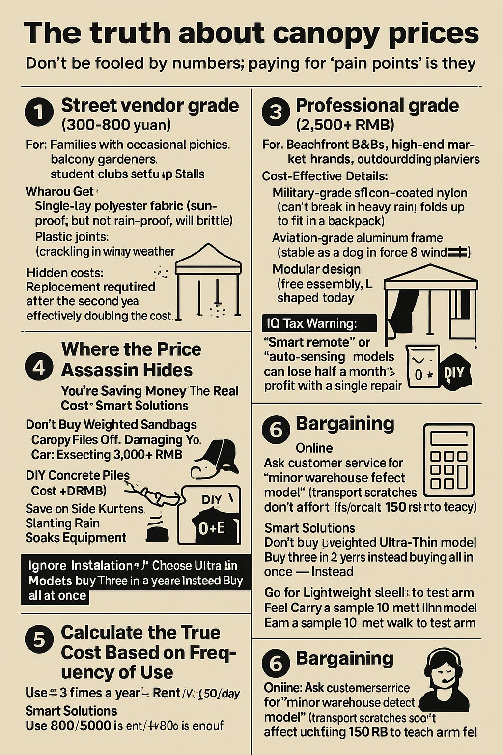 | Skip weight bags | Canopy→car windshield → $500+ repair | DIY concrete block anchors (free) | "But stakes are enough!" |