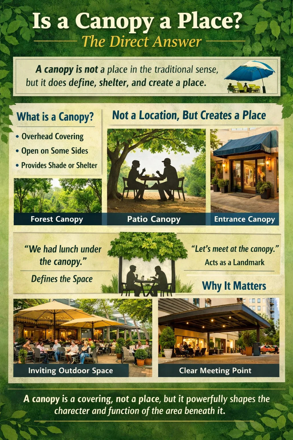 - 1 Is a Canopy a Place? The Direct Answer