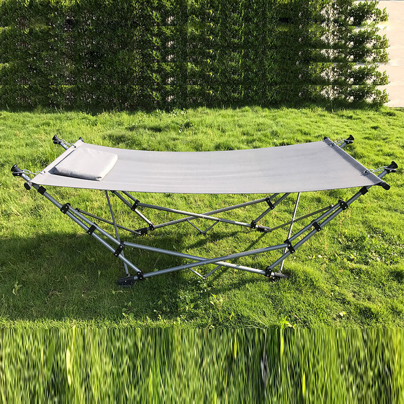 Our portable folding hammock is perfect for companion for camping trips, relaxing poolside, hanging out in the backyard or even at home. Be made of solid steel frame, this hammock stand is sturdy and durable. Folds conveniently to fit into an easy carry backpack and assembles quickly in just three easy steps and space-saving when not use. Do not hesitate to Get the comfortable, relaxing hammock you've always wanted, without all the fuss.